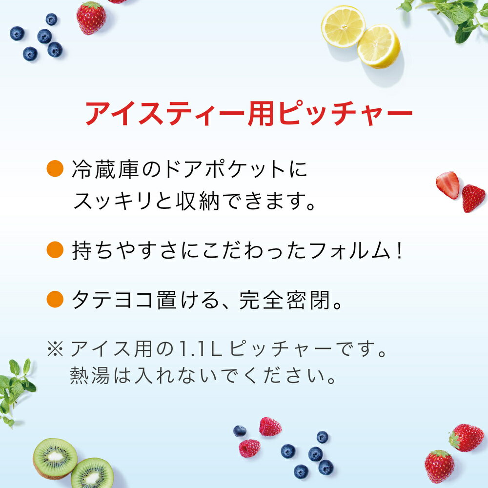 商品情報名称紅茶(コールドブリュー ピローバッグ・水出しアイスティー)・ピッチャー・タンブラー商品説明アイスティーの保管にぴったりなアイスティー用ピッチャー。