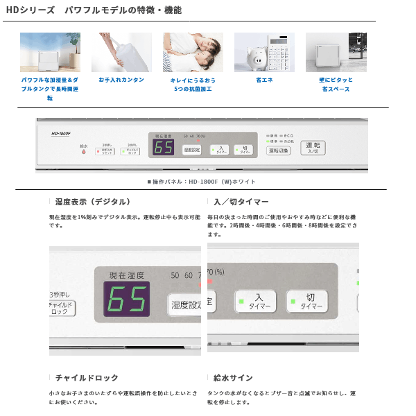 ■特長 目に見えない細かな水粒子で、空間を隅々まで加湿します。