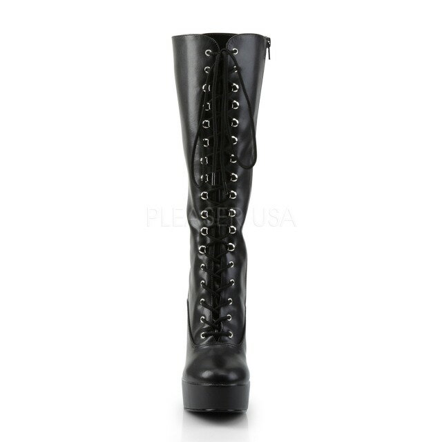 PLEASER【取り寄せ】プリーザー・レースアップ厚底ロングブーツ/品番:ELECTRA-2020/ELE2020/12cmヒール/衣装/ポールダンス/ダンス/コスプレ/撮影会/キャンギャル/レースクィーン/レディース/大きいサイズ/ブーツ/靴/シューズ/フェイクレザーブラック/黒