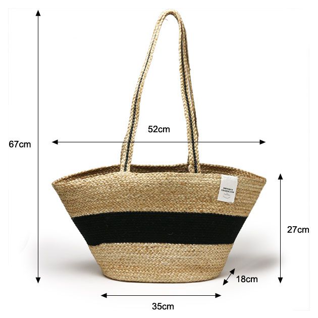 本体の大きさはもちろんのこと、持ち手も長いため、雑誌や大きいものをいれて持ち運びしやすく、普段使いのエコバッグから、ピクニックや海でのレジャーなどのアウトドアシーンまで、色々活躍してくれそうなアイテムです。