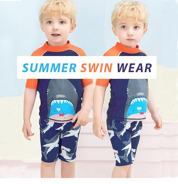 キッズ 水着 男の子 水着 キッズ 男の子 サメ柄こども 子供用 セパレート2点セット 子供水着 こども ラッシュガード フィットネス みずぎ スイムウェア UV対策 海パン 海水パンツ フィットネス スクール水着 男子 男児 半袖 80 90 100 110 120 130 140 150cm