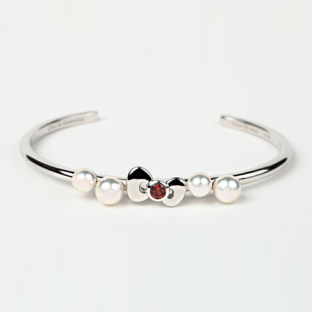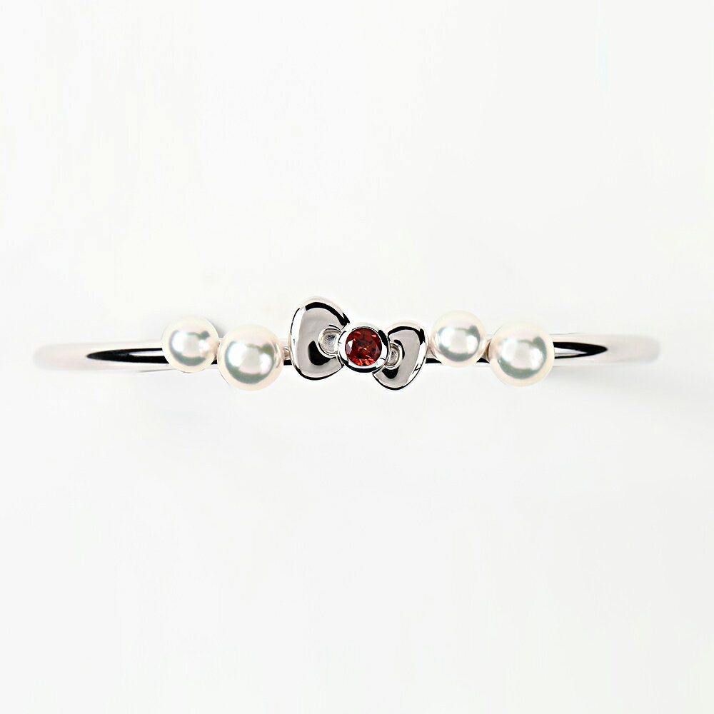 ギフト対応について赤い宝石の輝くリボンとパールで、可愛いだけじゃないエレガントな Hello Kitty Sweet Touch Ribbon バングル。