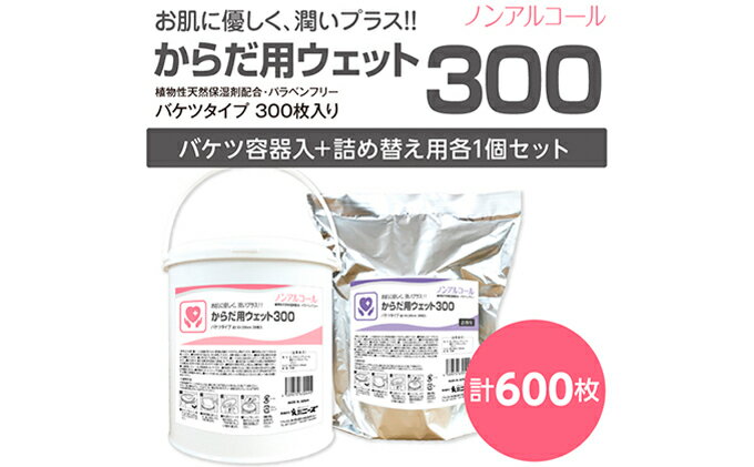 【ふるさと納税】からだ用 高密封バケツウェットティッシュ600枚(本体+詰替用) 【福祉用品・防災グッズ・防災用品・介護施設・病院・アウトドア】 お肌にやさしく うるおいプラス介護施設や病院、ご家庭、アウトドアなどお出かけの際にも...。