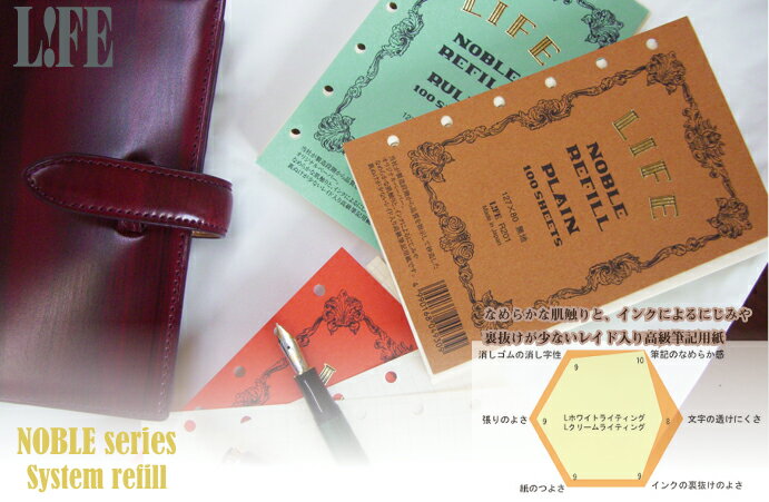 *ライフ ノーブルシリーズ システムリフィール サイズ:80×127mm ミニ6穴サイズ 対応 罫内容:方眼罫 5mm 枚数:100枚 クリームライティングペーパー この他のミニ6穴サイズ リフィルは こちらでご用意しております。