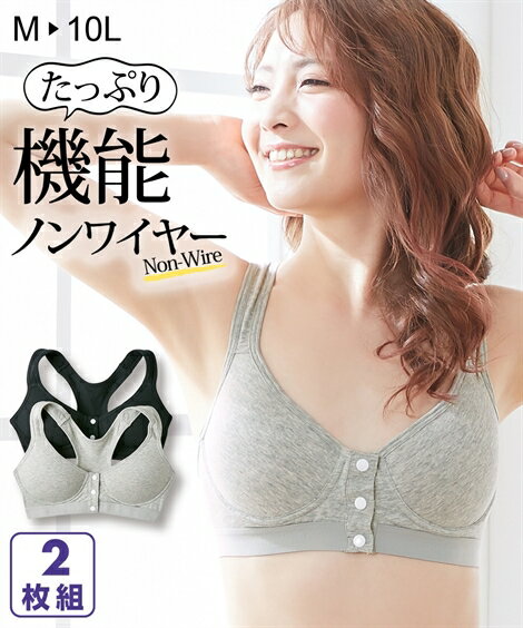 前開き ブラ ナイトブラ フロントホック ノンワイヤー 前開き ブラジャー 授乳 ブラ 綿100% インナー レディース 半袖 カップ付き セット 2枚 フロントホックブラ 大きいサイズ 3l ll L M 三分袖 汗取りインナー レディース 背中 乳がん ブラ 入院 cotton bra 母の日 ギフト