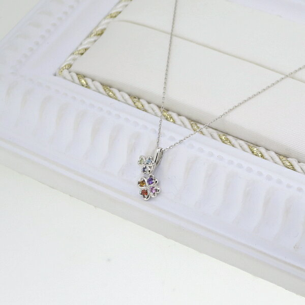 アミュレット ゴールドネックレス(チェーン付きペンダント) 四つ葉のクローバー クローバー カラフル ファンシーカラー マルチカラー 18金 ホワイトゴールド ジュエリー ネックレス ペンダント 首飾り レディース 女性 アクセサリー ギフト プレゼント おしゃれ