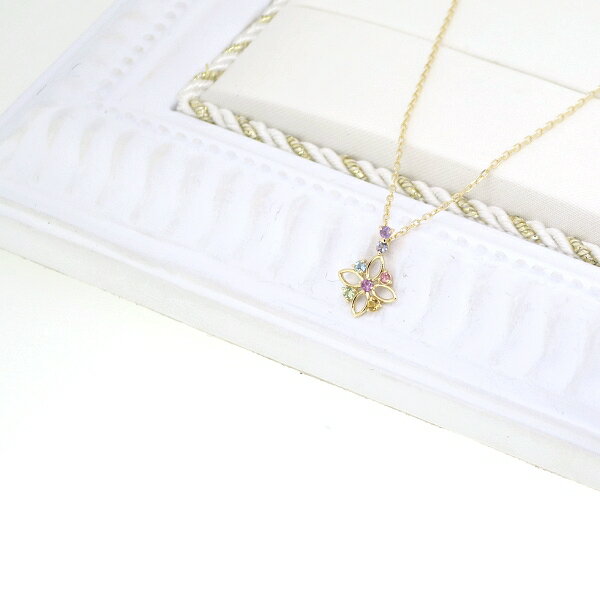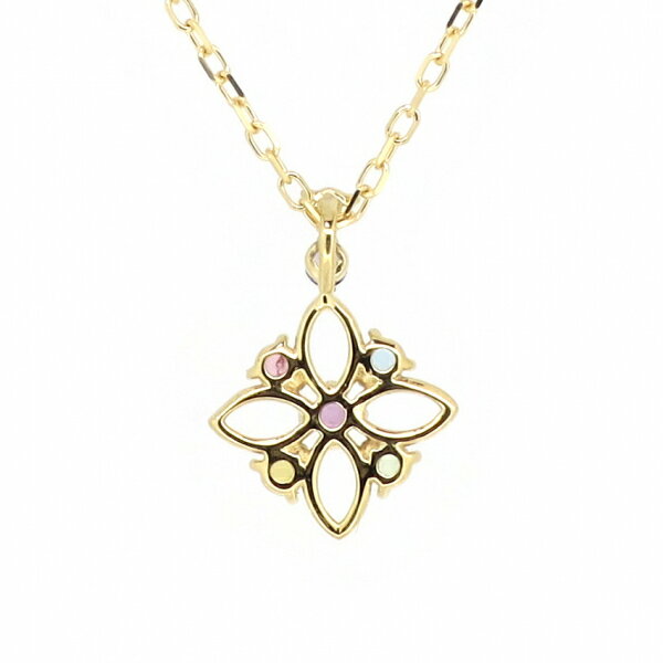 花 ゴールドネックレス(チェーン付きペンダント) 花びら フラワー カラフル ファンシーカラー マルチカラー 18金 イエローゴールド ジュエリー ネックレス ペンダント 首飾り レディース 女性 アクセサリー ギフト プレゼント おしゃれ