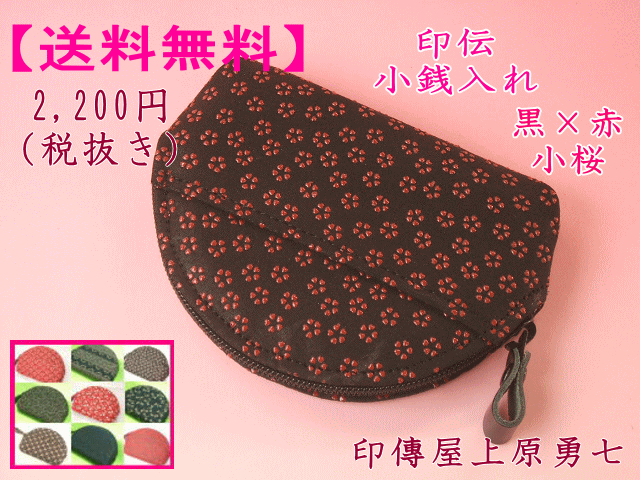 【送料無料】 印伝 小銭入れ黒地に赤漆の小桜印傳屋上原勇七1004