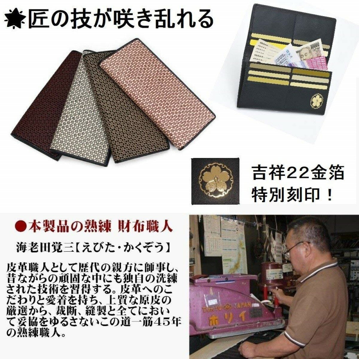 その粋な桜、「桜花」の吉祥護符を22金本金箔にて刻印し、特別謹製した印伝財布です。