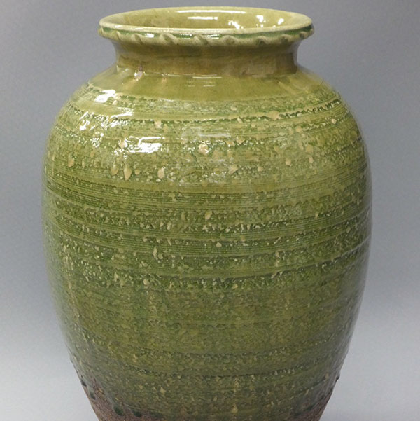【花器・花瓶】壷型 高さ約20cm 緑色【中古品】【期間限定】送料無料